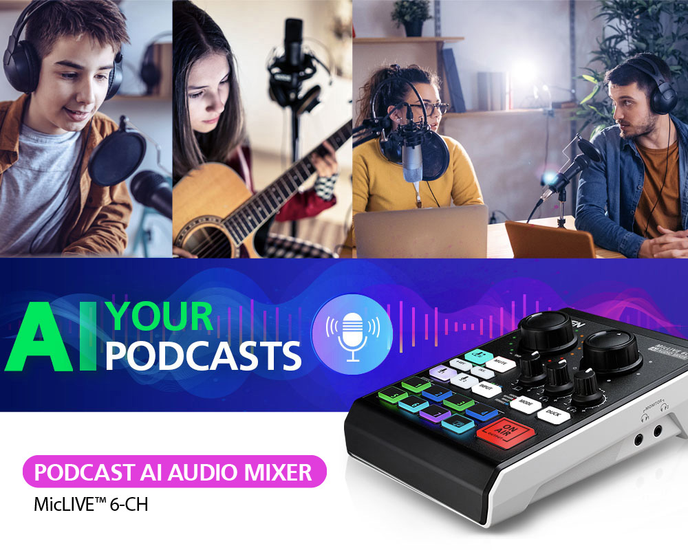 Podcast AI Audio Mixer | MicLIVE™ 6-CH