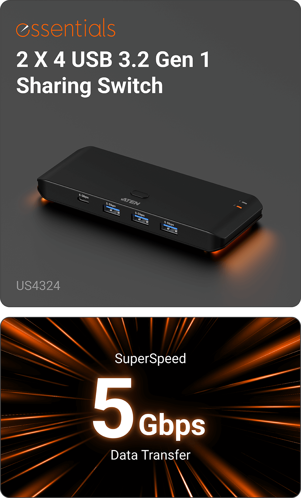 - 1 x US4324 2 x 4 USB 3.2 Gen 1 Sharing Switch