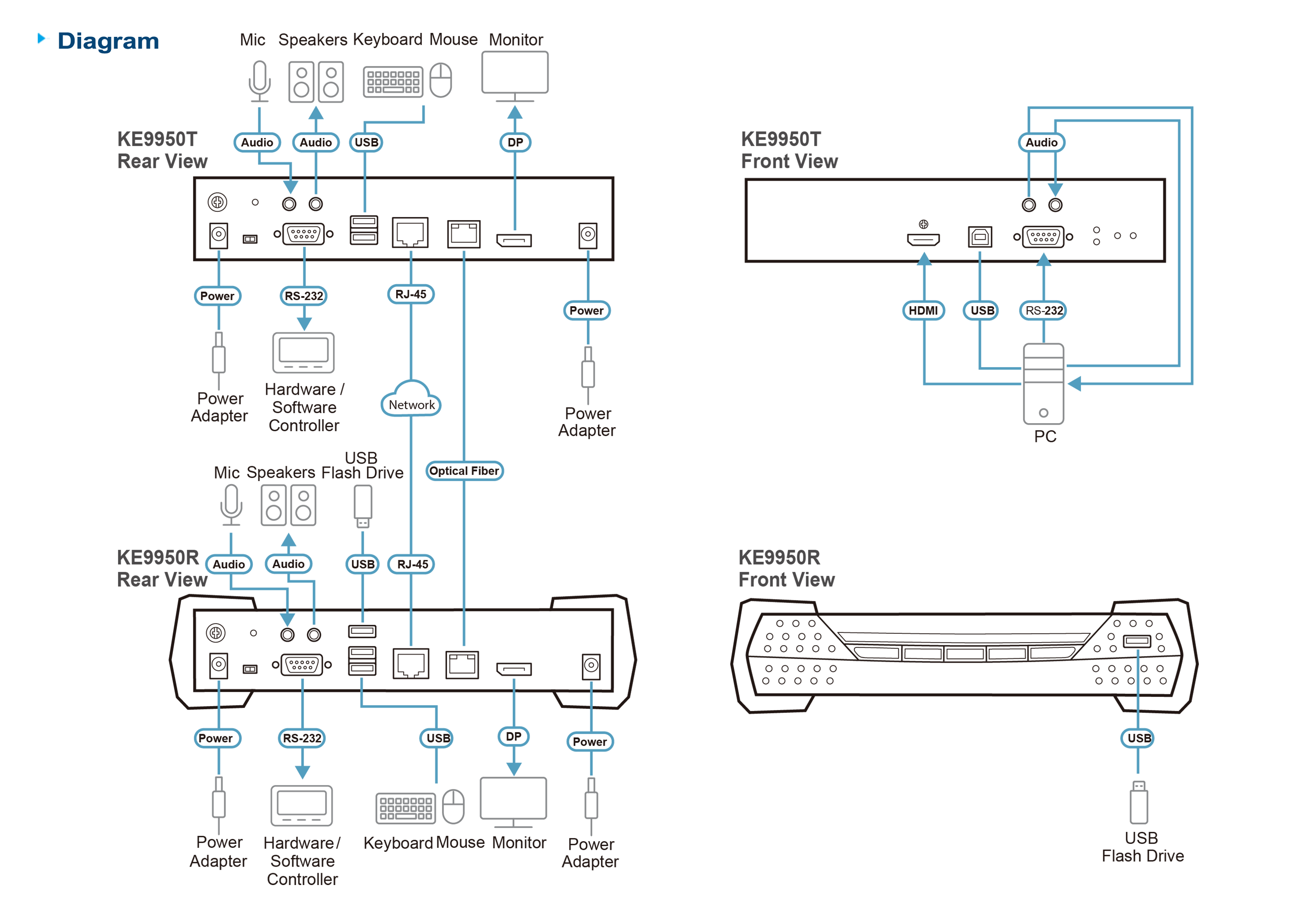 - 1x KE9950R 4K DisplayPort Single Display KVM over IP Receiver