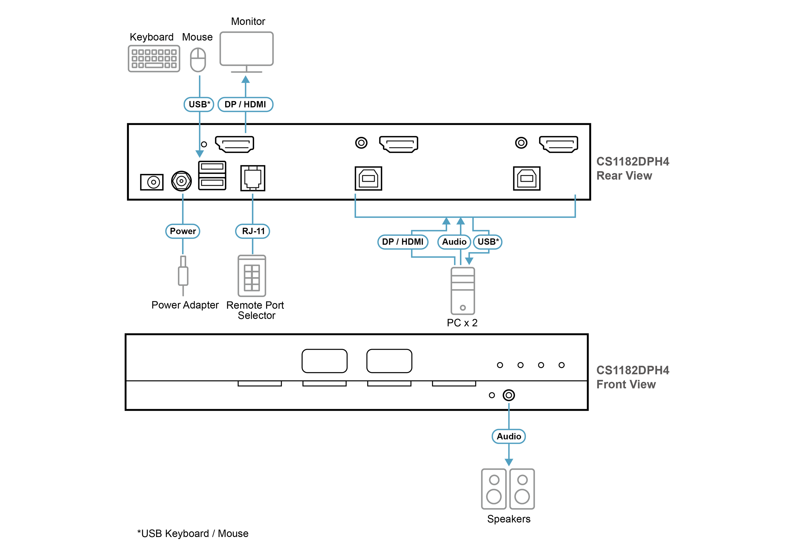 - 1x CS1182DPH4 2-Port USB 5K DisplayPort/HDMI Universal Secure KVM Switch