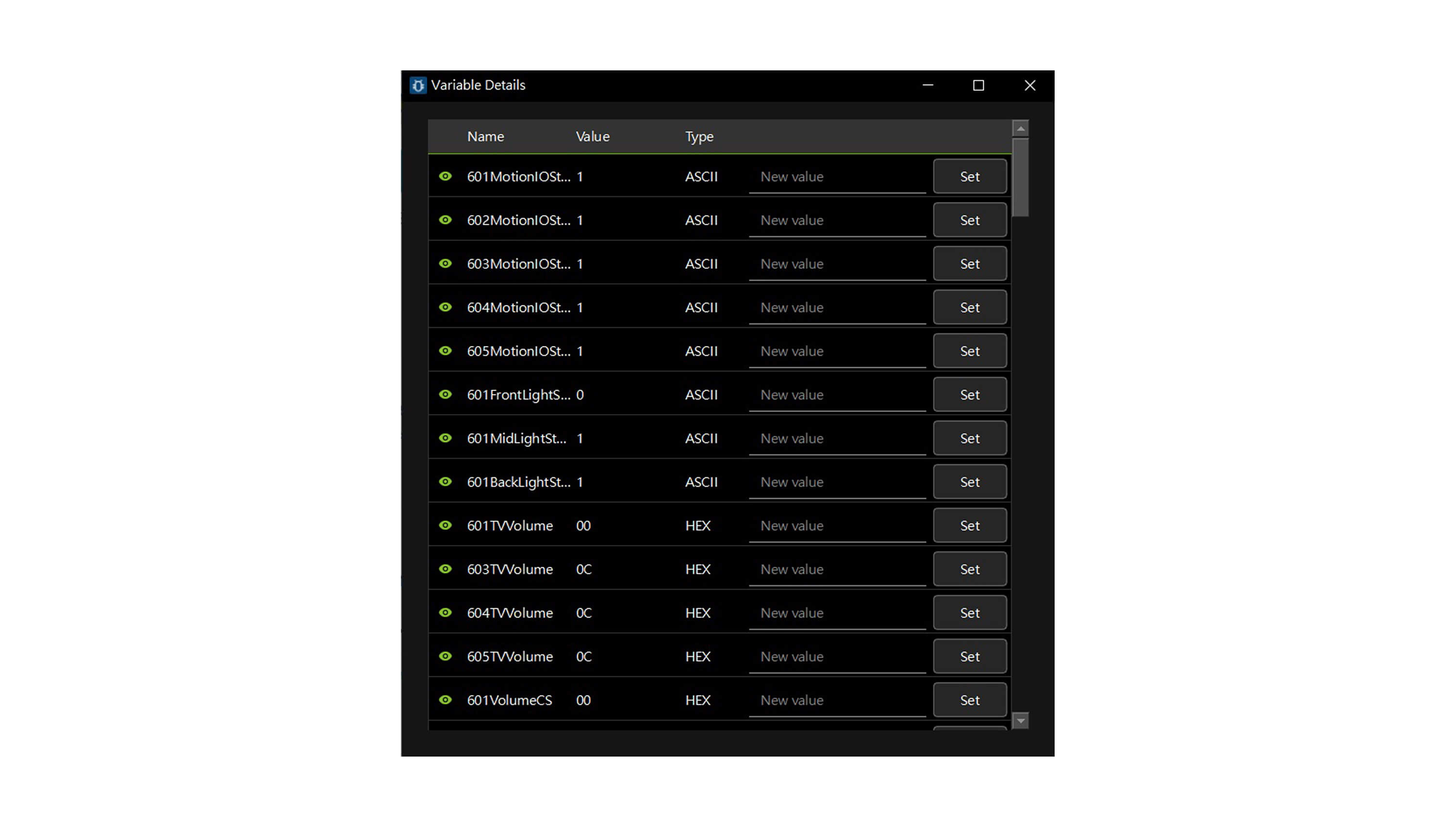 - Allows users to modify variable values in real-time