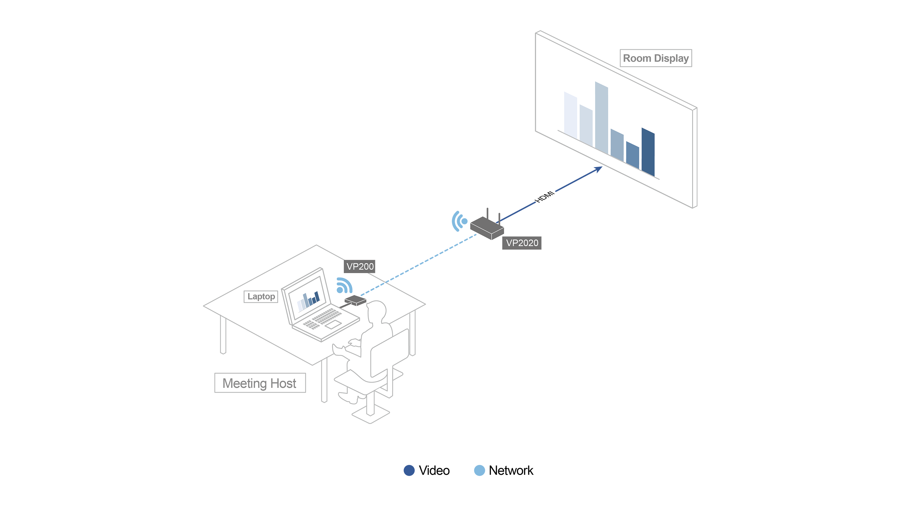 Woks with VP2020 / VP2021 4K Wireless Presentation Switch to enhance BYOD experiences by allowing users to instantly share content from their own USB-C laptops wirelessly.