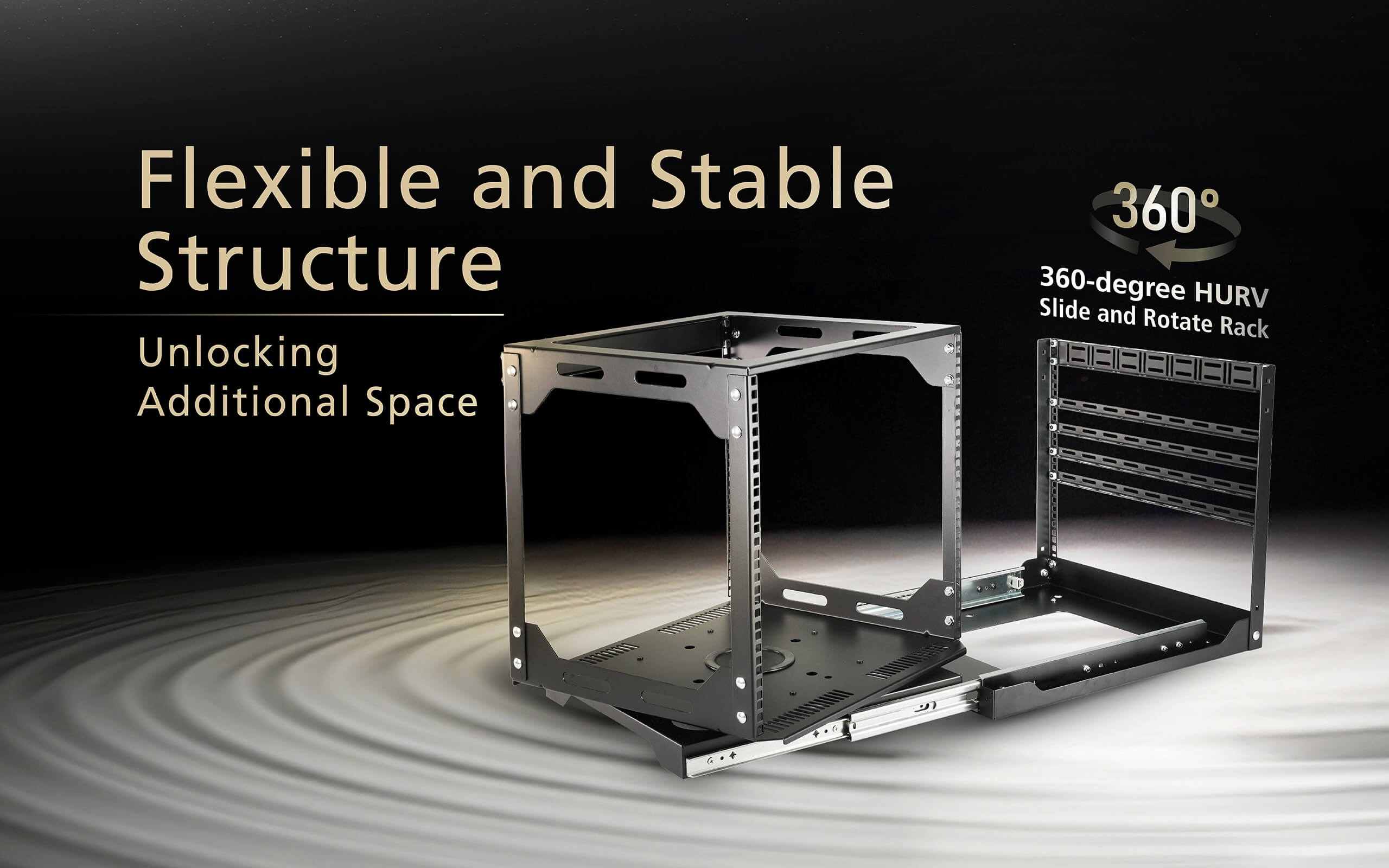 The ATEN HURV Slide and Rotate Rack adopts open-frame design, featuring pull-out and 360° rotation functions, making it easy to operate when installing equipment or connecting cables. Its flexible structure is perfect for installation inside cabinets, saving valuable space.