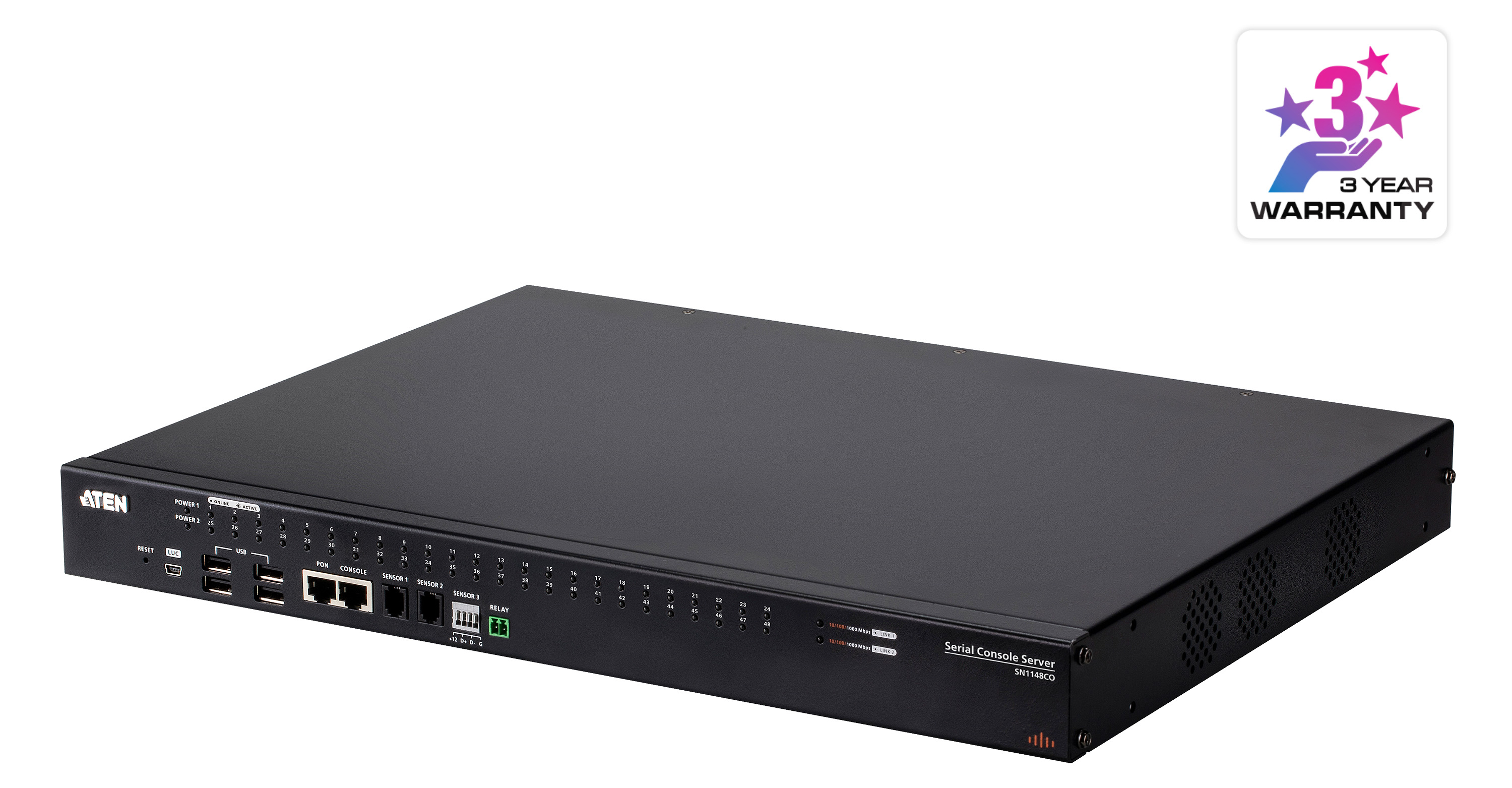 ATEN Serial Console Servers with Dual Power / SFP (SN1116CO, SN1132CO, SN1148CO) provide IT and network administrators secure, out-of-band access to serial devices located at data centers or remote sites, such as network switches allowing console operation using RS-232 and USB console.