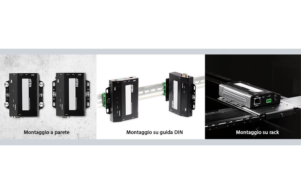 - Montaggio su guida DIN, montaggio a parete, montaggio su rack e installazione desktop disponibili
