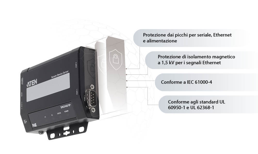 - Protezione dai picchi per seriale, Ethernet e alimentazione