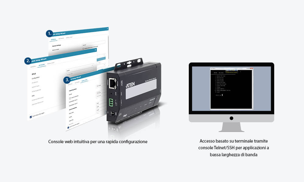 - Connettività da seriale a Ethernet