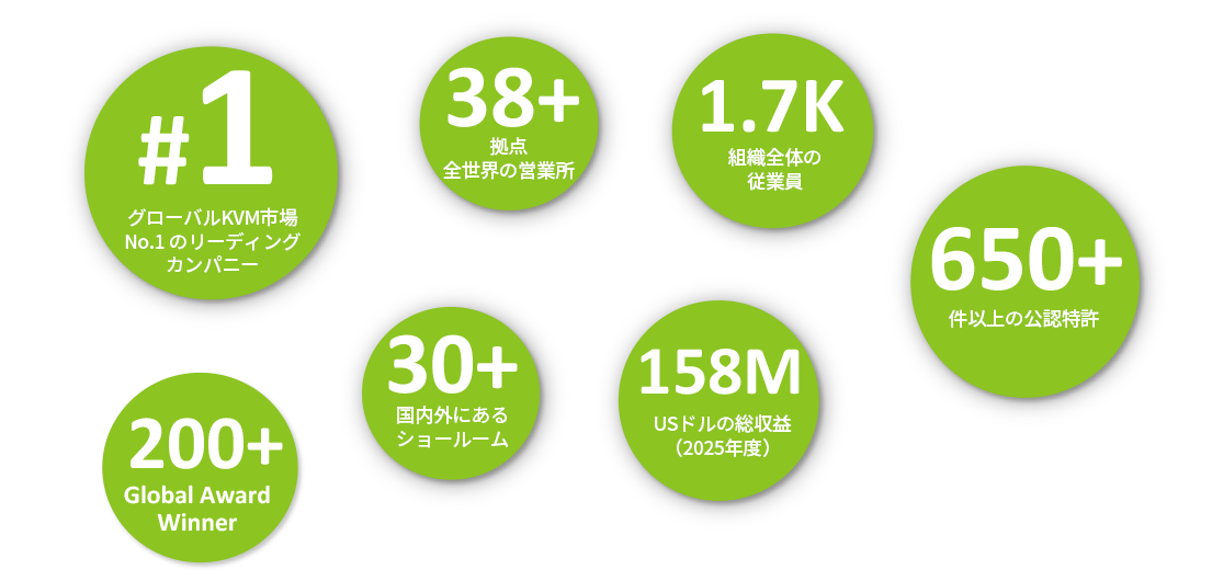イノベーションはATENのDNAに深く根付いています。私たちは、未来をより実現可能で身近なものにする技術の開発に取り組み続けています。業務用インフラから高性能なコンシューマー製品まで、設計から提供までを一貫して行い、用途に応じた最適なソリューションを提供します。ATEN製品は、KVM・プロフェッショナルAV・SOHO・インテリジェント電源ソリューションを統合して提供し、企業・政府・教育・医療・製造・放送・メディア・交通環境の各分野におけるAV/IT機器の接続・管理・最適化を行います。650件以上の国際特許とグローバルな研究開発体制を強みに、ATENは世界中のお客様に革新的な製品とソリューションを提供し続けています。