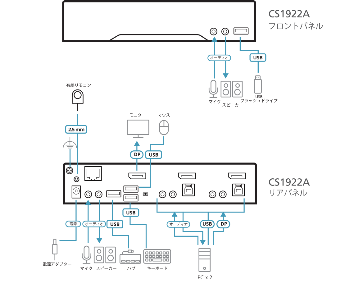 CS1922Aは、DisplayPort 1.4準拠・8K解像度対応の2ポートUSB DisplayPort KVMP™スイッチです。