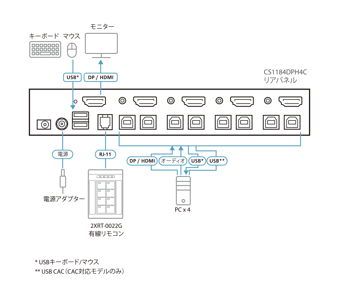 2. 本製品は、ATEN PP v4.0 2/4ポート ユニバーサルセキュアKVMスイッチおよびATEN PP v4.0 2/4/8ポートDVI/HDMI/DPセキュアKVMスイッチと互換性があります。