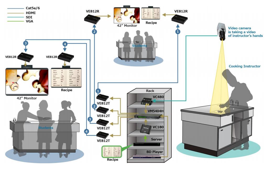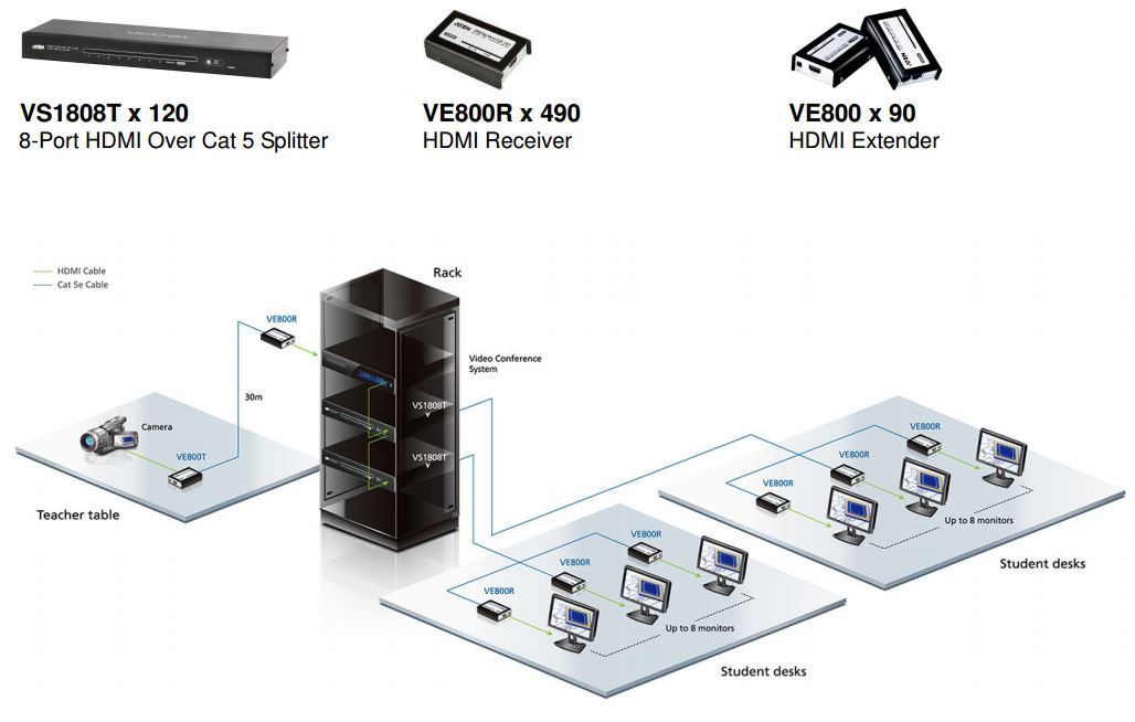 55개의 강의실을 보유한 태국의 어느 대학교는 학내 비디오 방송시스템을 아날로그에서 HDMI로 교체하여 학생들의 학습경험을 개선하고자 합니다. 학교는 교실마다 HDMI 카메라 및 비디오 컨퍼런스 시스템을 활용해 교습 비디오를 기록/저장하는 것 이외에 다음의 조건을 충족하는 HDMI 신호전달 장치를 필요로 합니다...