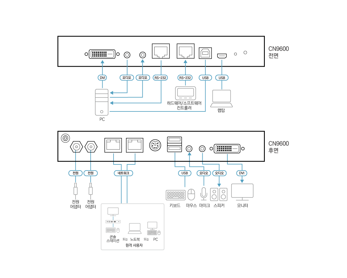 - 1x CN9600 DVI KVM over IP 스위치