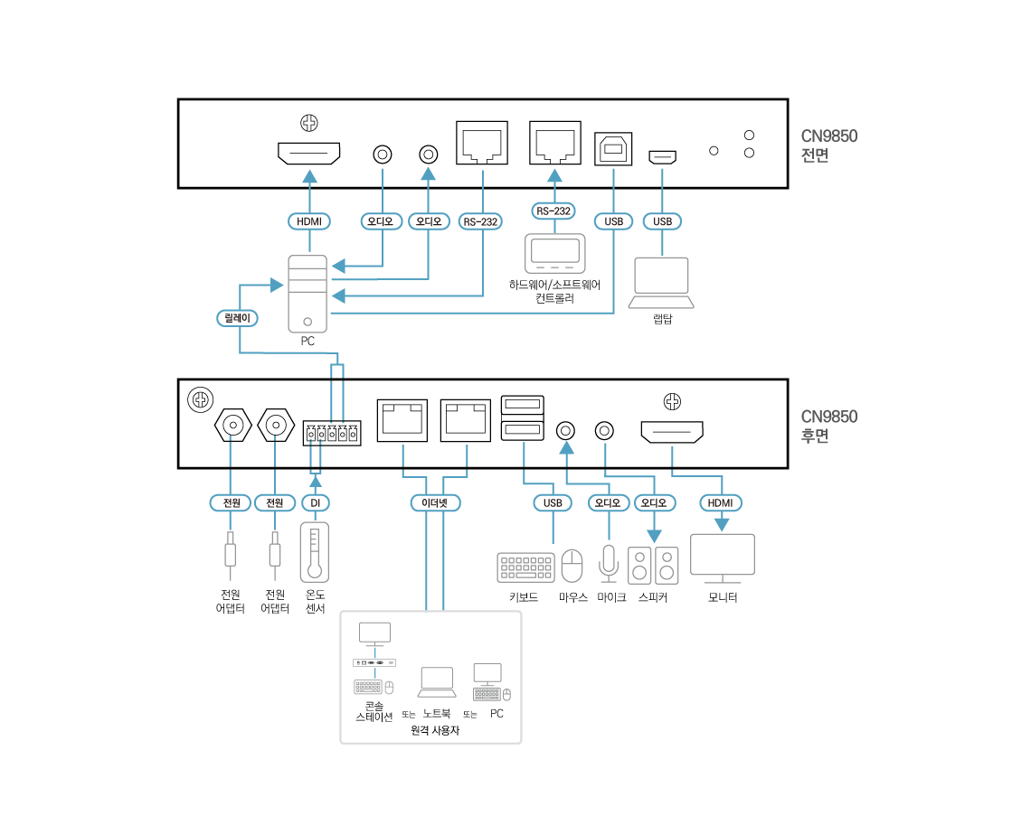 안내: 1. CN9850 HDMI는 오디오를 지원하지 않으며 3.5mm 오디오 포트를 통해서만 전송될 수 있습니다.