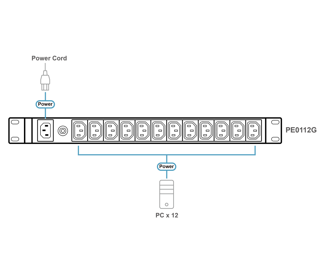 A série PDU Básica PE0112 contém 12 tomadas CA e está disponível em várias configurações de fichas IEC ou NEMA. A PDU Básica da série PE0112 possui um design de poupança de espaço 1 U que permite ser montada na vertical no exterior de um bastidor, resultando numa melhor utilização do espaço na sala de servidores, ao mesmo tempo que disponibiliza 12 tomadas CA.
