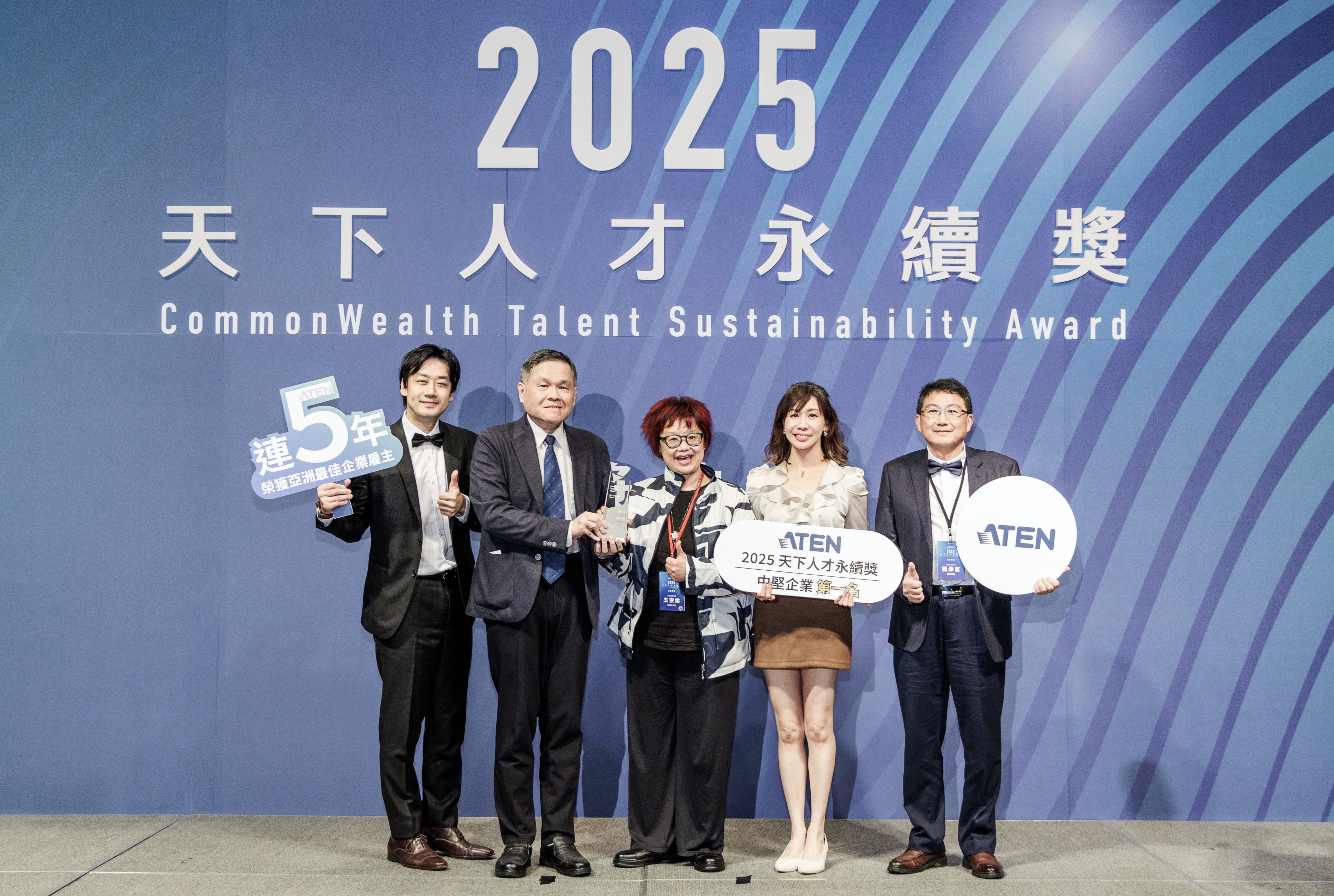 【2025年11月13日; 台灣台北】由《天下雜誌》主辦的「天下人才永續獎」頒獎典禮昨(12)日在台北遠東香格里拉盛大舉行。全球智慧製造與物聯網解決方案領導廠商—宏正自動科技 (ATEN International,股票代號:6277),在眾多優秀企業中脫穎而出,憑藉在「人才永續發展」與「友善家庭照顧」方針上的卓越表現,榮獲《2025天下人才永續獎》中堅企業組第一名。同時,宏正亦榮登《2025天下永續公民獎》中堅企業組第四名,並獲得《2025 親子天下友善家庭職場獎》殊榮,成為今年橫掃三項永續指標獎項的中堅企業典範之一。宏正長期以「培育人才、厚植永續力」為核心使命,積極推動優於法令規範的福利制度,例如提供每胎新生兒生育補助金15萬元(雙胞胎30萬元),持續以企業實力帶動正向影響力,與社會各界攜手打造健康、永續的台灣人才生態,讓台灣成為吸引全球人才匯聚的磁力之島。