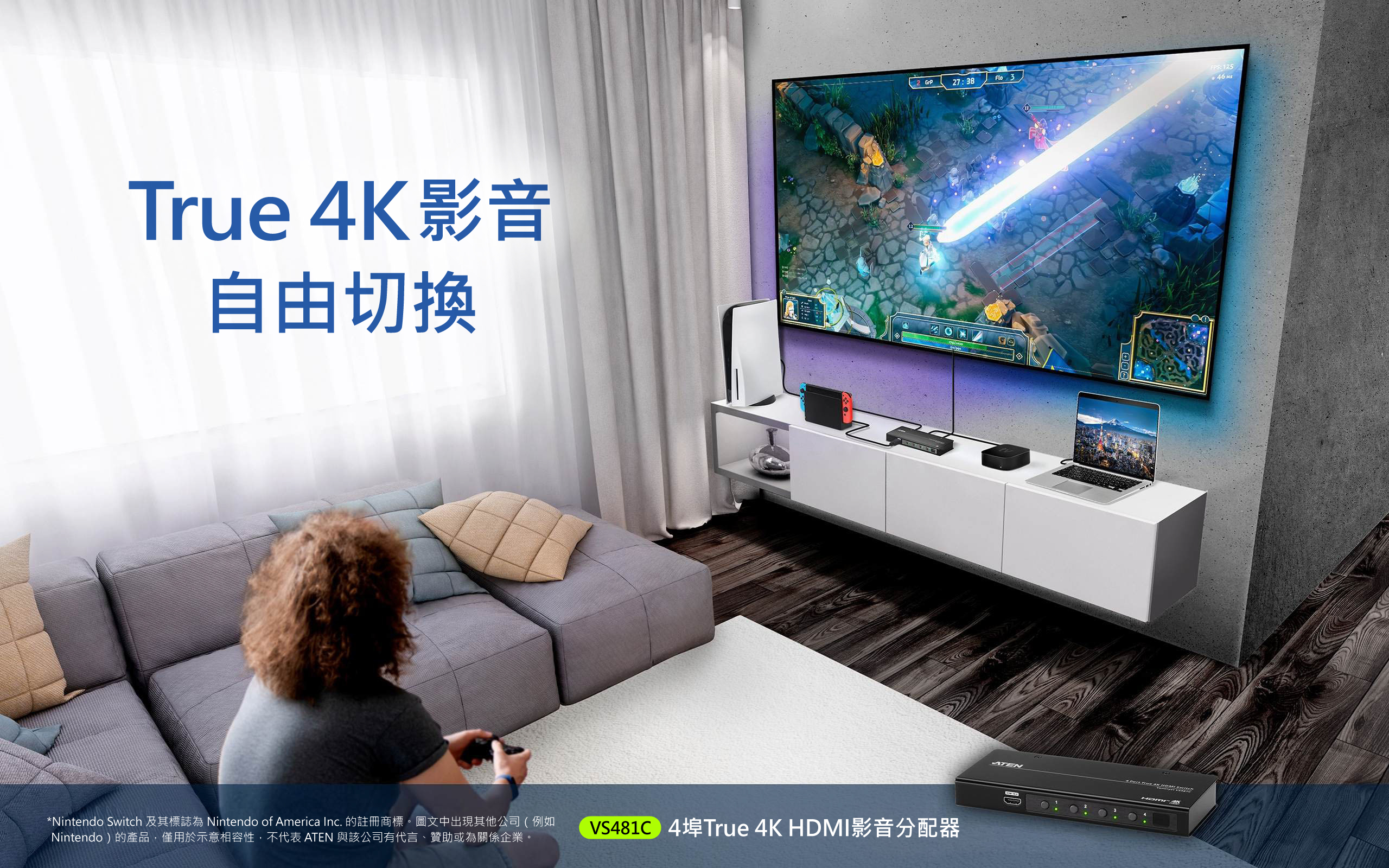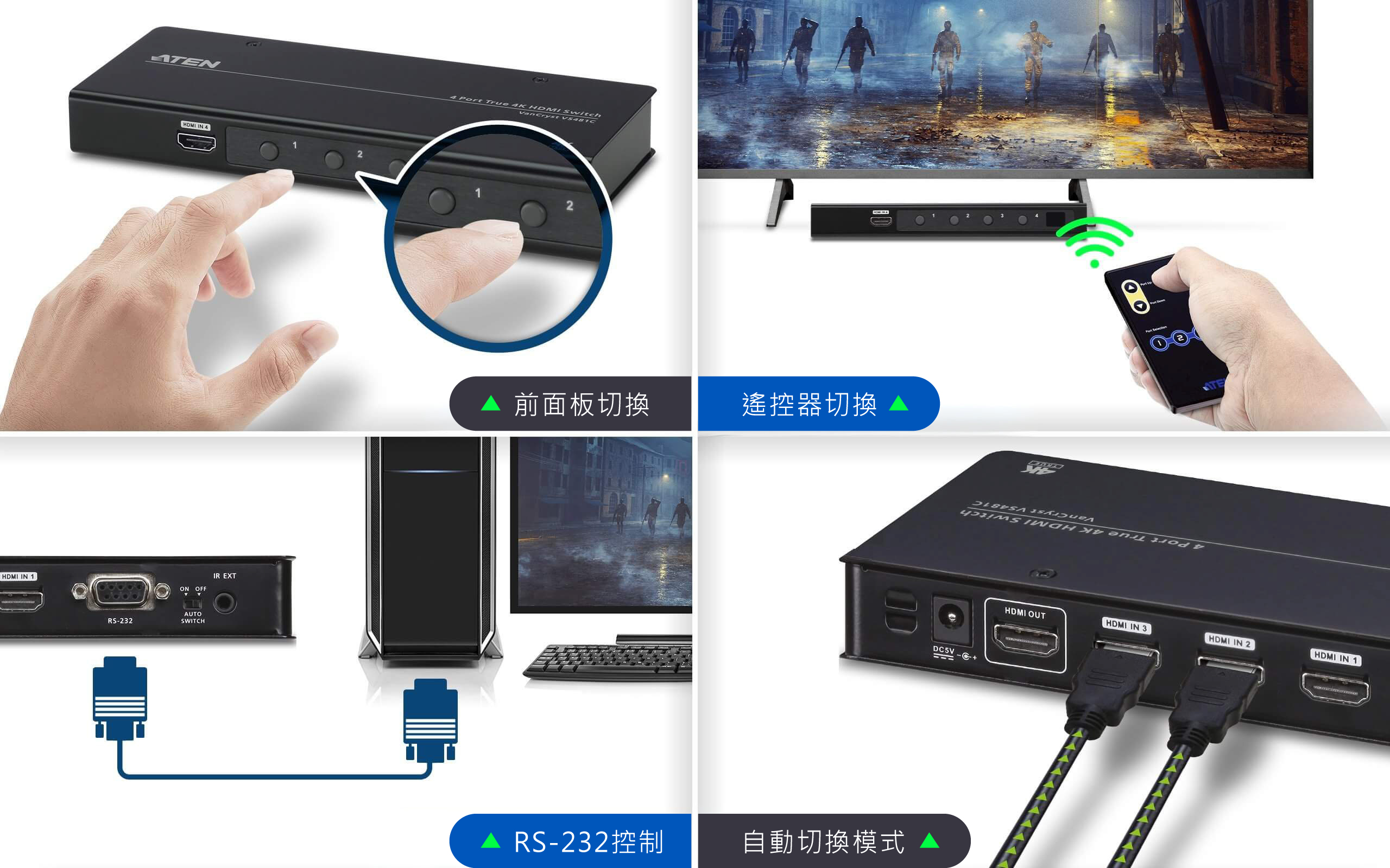 - 1x VS481C 4埠True 4K HDMI影音切換器