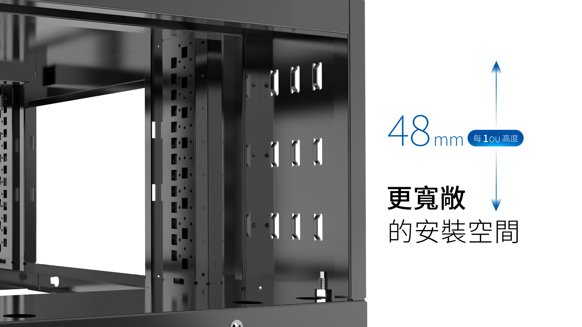 採用 48 mm 高度的 OU 設計,相較傳統 44.45 mm,空間更寬敞,有利於設備安裝。