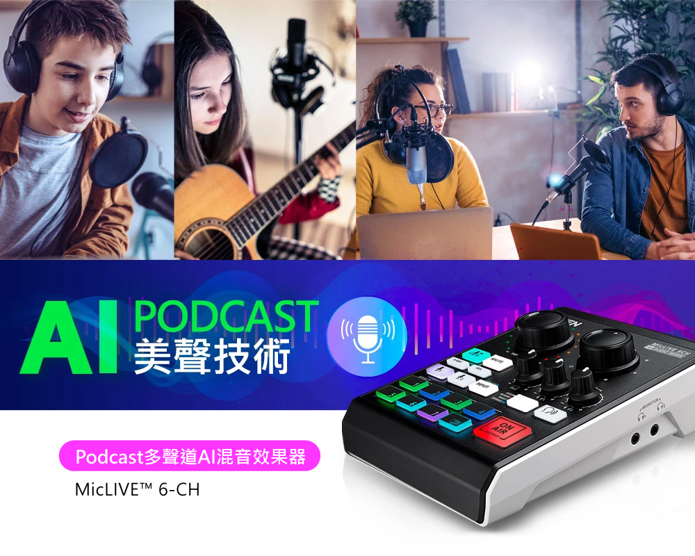 Podcast多聲道AI混音效果器 | MicLIVE™ 6-CH