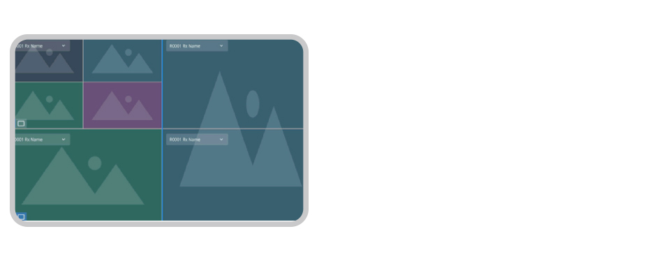 - 支援客製化電視牆配置 – 可將多個接收器畫面「合併」成一個大型電視牆,也可將其「分割」回獨立顯示,提供靈活的顯示配置功能