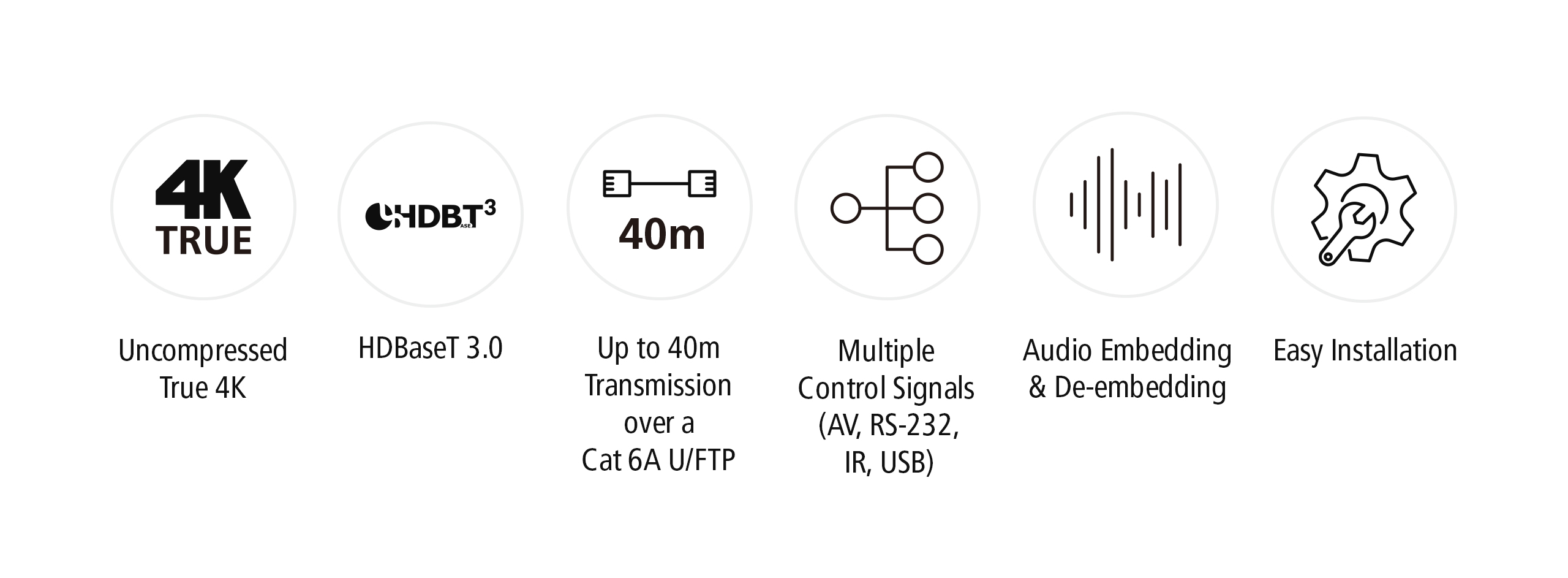 - HDBaseT™ 3.0 (True 4K up to 40m / 100m)